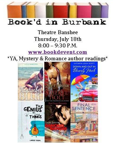 On Thursday, July 18th 2013 I will be speaking at Book’d in Burbank, a fantastic literary event hosted by Liz D at Theatre Banshee in Burbank. Festivities include Young Adult (YA), Mystery, and Romance (that’s me!) author readings, a gift basket raffle and books giveaway, stand-up literary comedy, a dessert & mingling reception, and a charitable book drive to benefit the Los Angeles County affiliate of Susan G. Komen for the Cure. Tickets are just $10, and gets you a free raffle ticket. I would love to see you there!